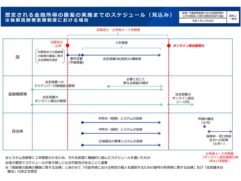 金融所得を把握して医療保険料を設定する仕組みのスケジュールイメージ(社保審・医療保険部会(2)5 251204)