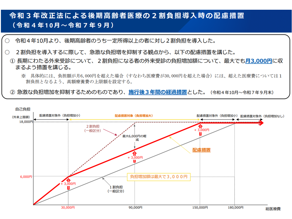 なお今後、例えば「2割負担・3割負担の対象者を拡大」するとなった場合でも、負担の急増を避けるための激変緩和措置が検討される見込みです。これまでには、例えば▼後期高齢者医療制度(75歳以上)で2割負担者を拡大するにあたり、負担増の幅が最大で「1か月3000円増にまで収まる」ような特例措置を3年間設ける▼前期高齢者(70-74歳)の負担を1割から2割に引き上げるにあたり、新たに70歳に到達する人から順に「2割」とし(この人は従前の3割から2割へ負担減となる)、それまで「1割」であった人は負担増としない(結果、負担増となる人は個人単位では1人も生じない)―などの激変緩和措置が取られており、こうした仕組みも参考に検討していくことになるでしょう。