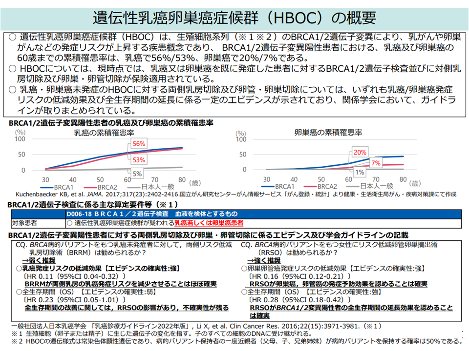 未発症HBOCに対する予防的切除などを学会が推奨している(中医協総会(2)1 251205)