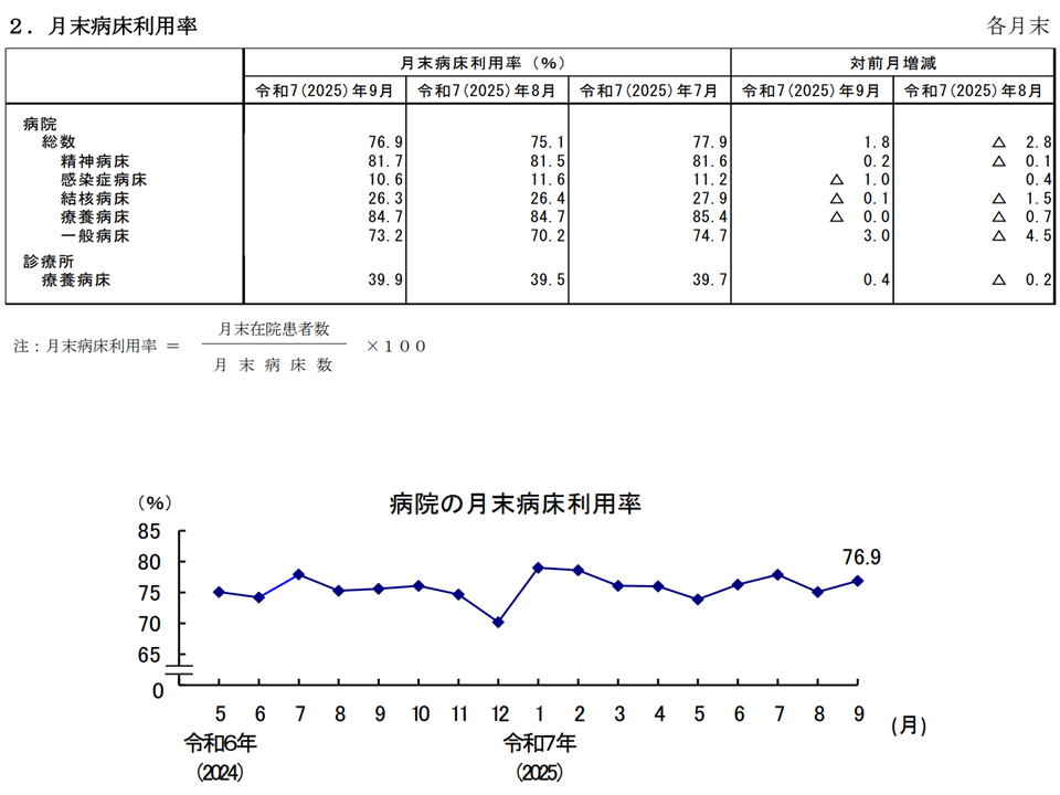 厚生労働省が12月5日に公表した今年(2025年)9月分の病院報告から、こうした状況が明らかになりました(厚労省のサイトはこちら)。