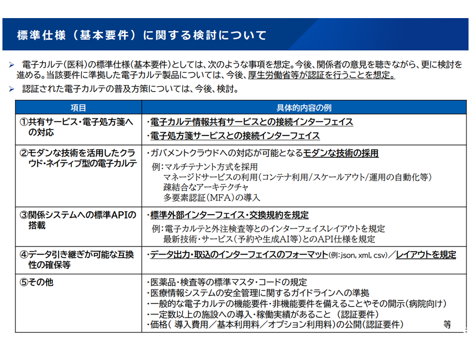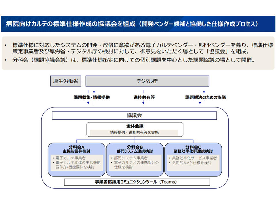 →病院システムは複雑なため厚労省・デジタル庁・ベンダーで標準仕様策定等に向けた協議を進行中