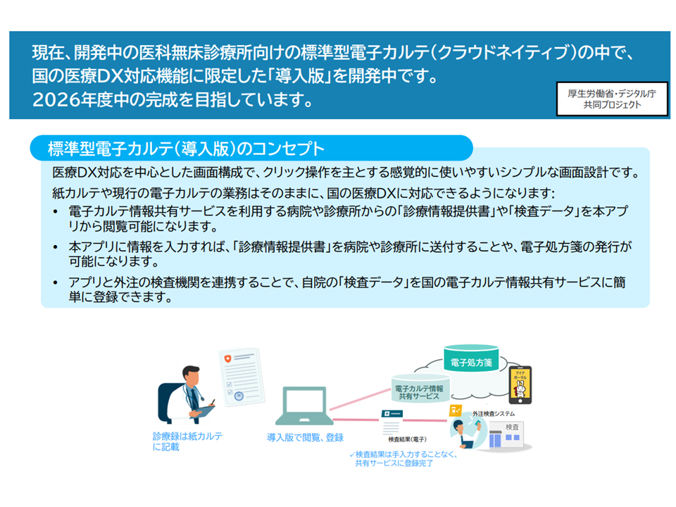 国の定める「標準仕様」に沿った「クラウドネイティブな電子カルテ」の普及目指す