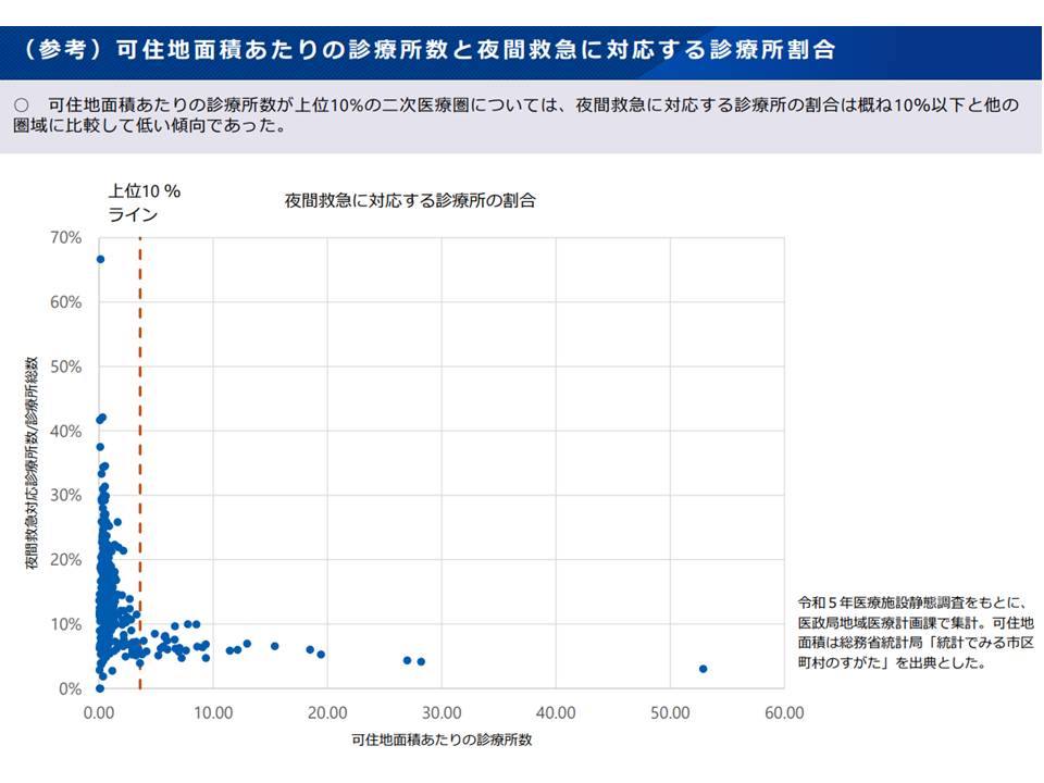 可住面積当たりクリニック数と夜間救急対応割合との関係(地域医療構想・医療計画検討会(2)5 251212)