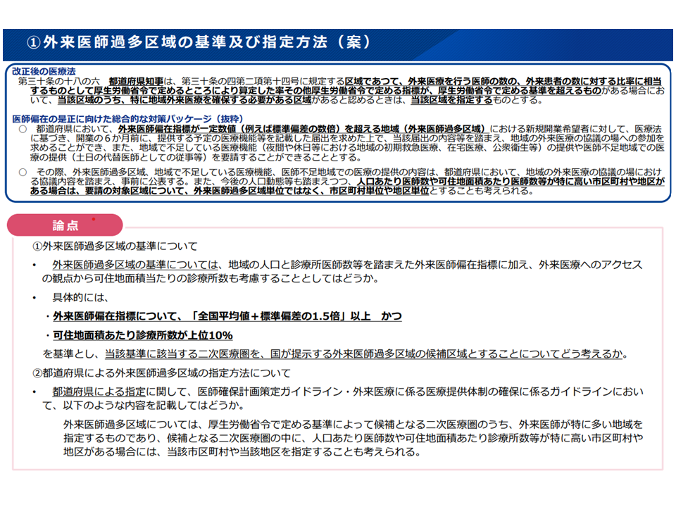 外来医師がとても多い地域での新規クリニック開業に一定の抑制をかける
