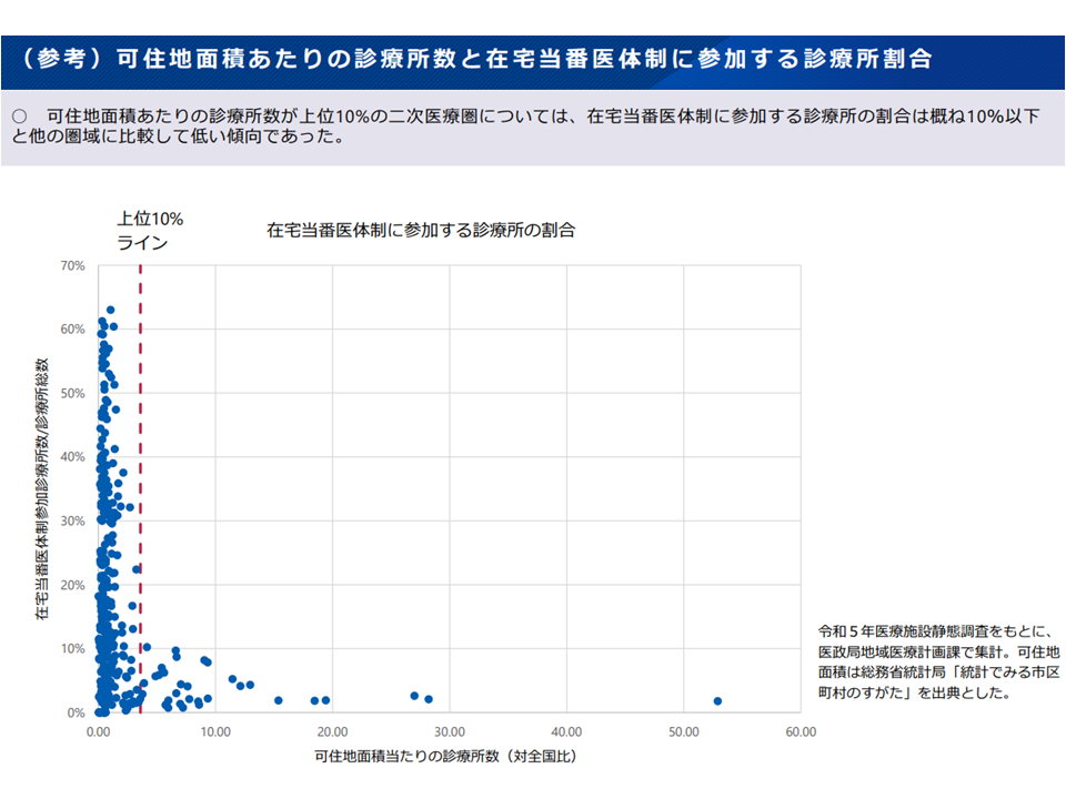 可住面積当たりクリニック数と在宅当番医体制参加割合との関係(地域医療構想・医療計画検討会(2)4 251212)