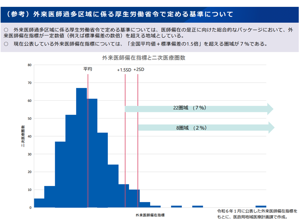 ・「外来医師偏在指標が全国平均値+標準偏差の1.5倍以上」の地域は22医療圏ある