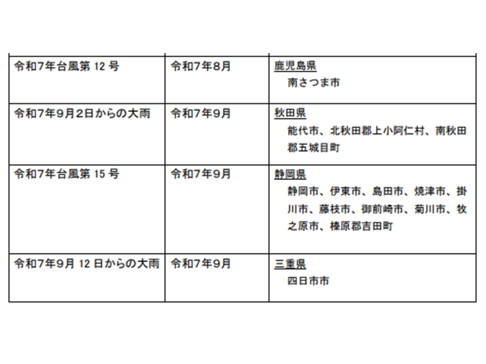 ▽機能評価係数IIの「診療実績に基づく指数」については、過去の事例も踏まえ2024年 10月以降に発生した災害(下表)に被災した地域に所在する病院においては、次のいずれかの値を比較して「より高い値」に基づいて算出する