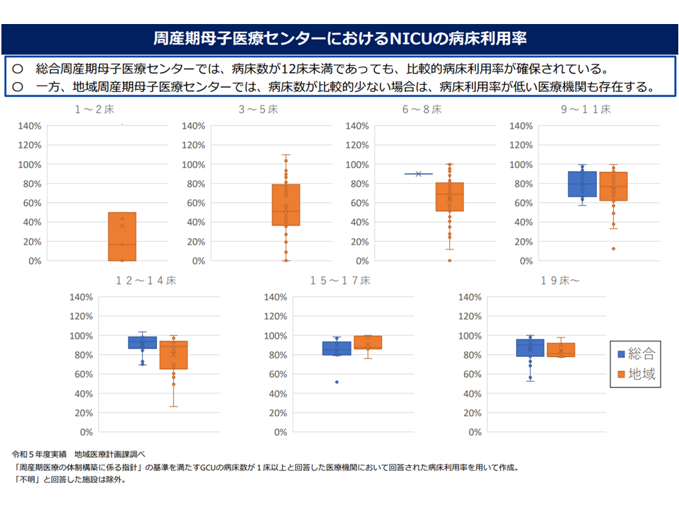 NICU・GCUの利用率が低い基幹施設も散見され、周産期医療体制の集約化を検討