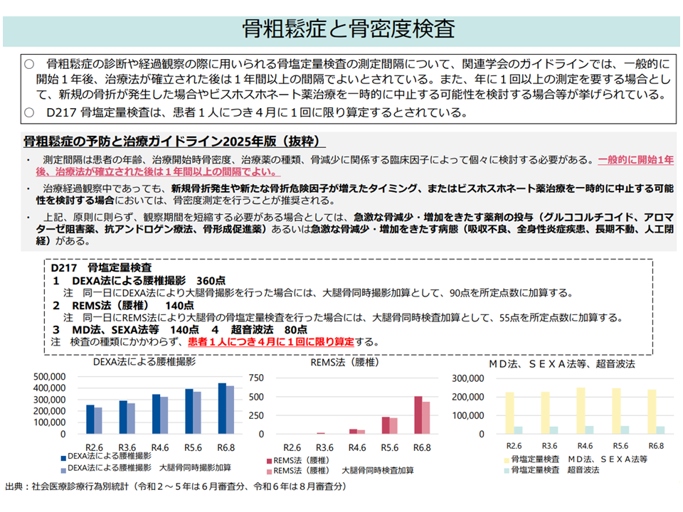 ▽D217【骨塩定量検査】は、患者1人につき「4か月に1回」の算定を可能としている点をどう考えるか