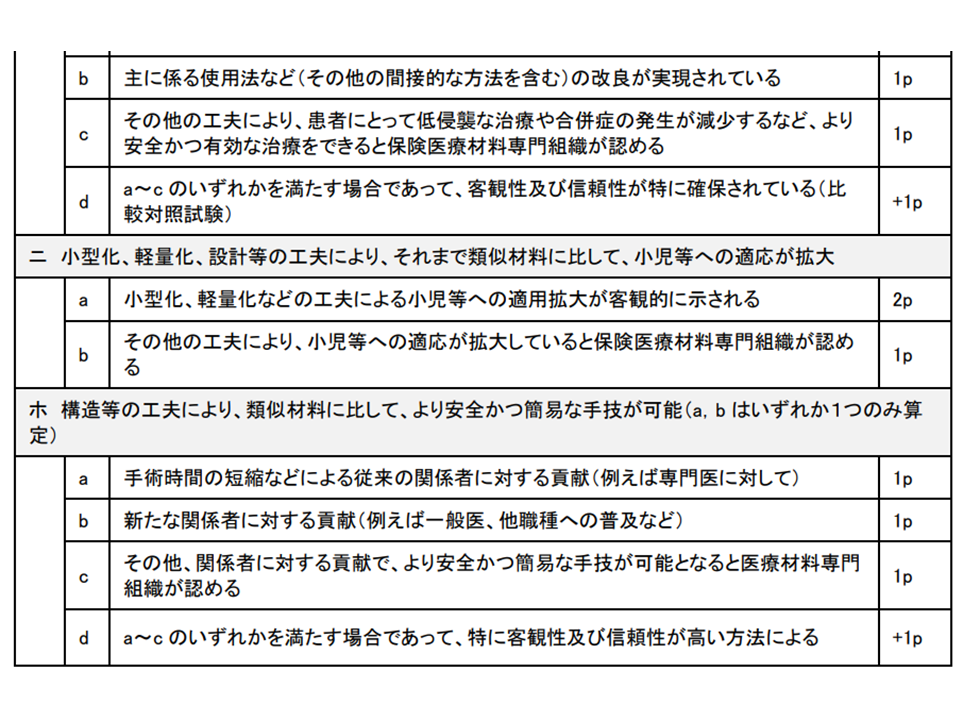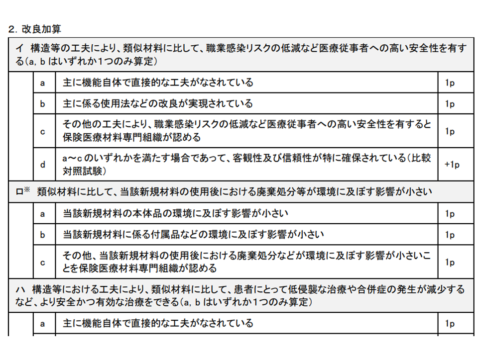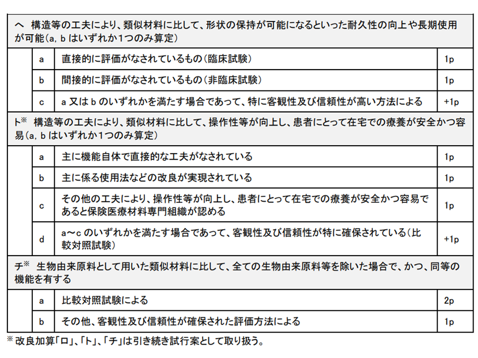 →2016年から2025年9月に至るまでに該当する品目がみられなかった項目(改良加算「ロ」、「ト」、「チ」)については引き続き試行案として取り扱い、今後該当事例が蓄積された場合等には明確化を検討する