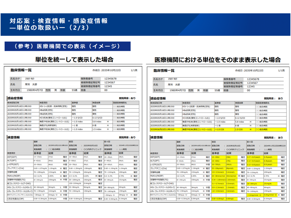 ・検査項目の「単位を統一」する方針が医療現場に負担となる(医療機関ごとに異なっている)