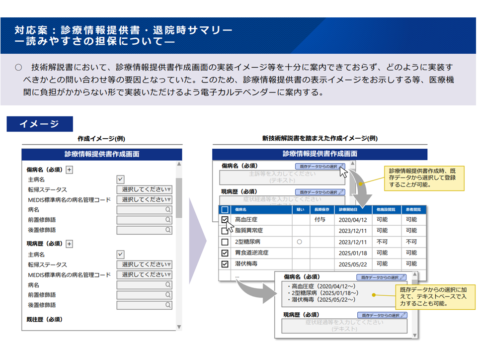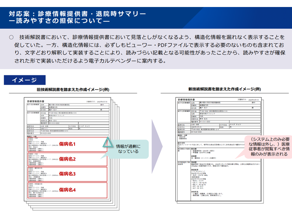 ▼診療情報提供書の「見やすさ」に配慮した技術解説書に修正する[2025年12月公表予定の技術解説書(2.0.0版)に反映]