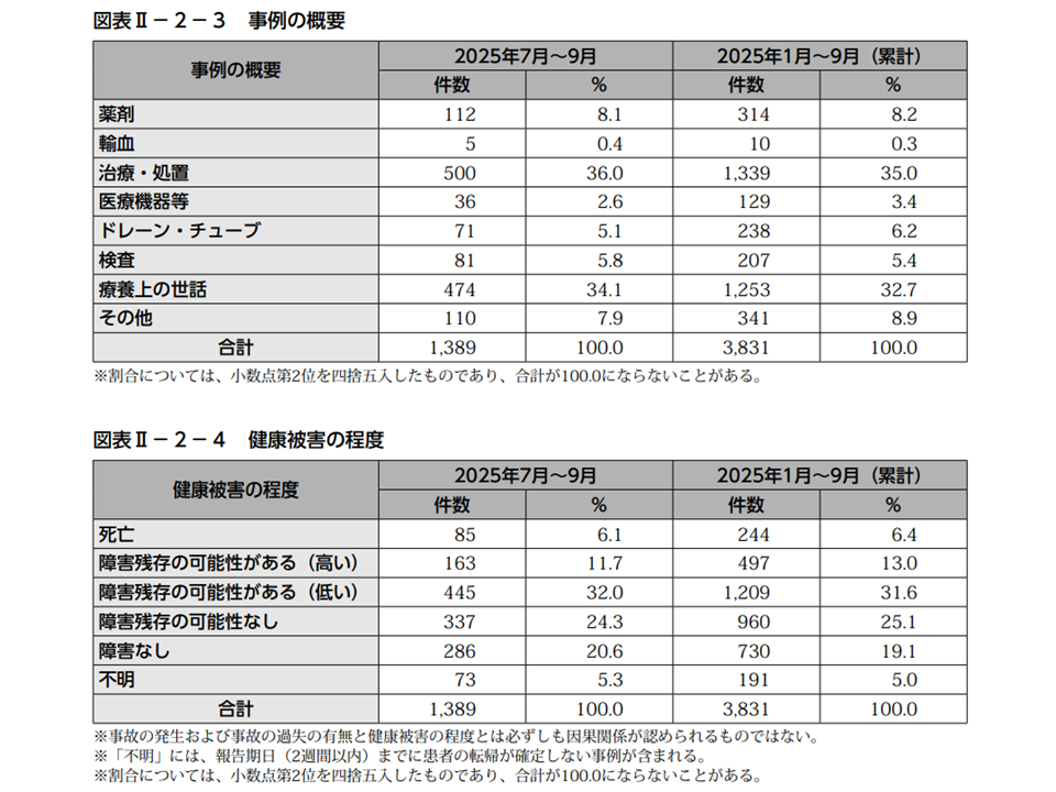 昨年(2025年)7-9月に報告された医療事故は1389件でした。