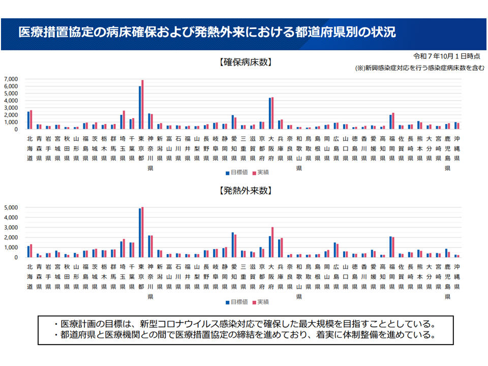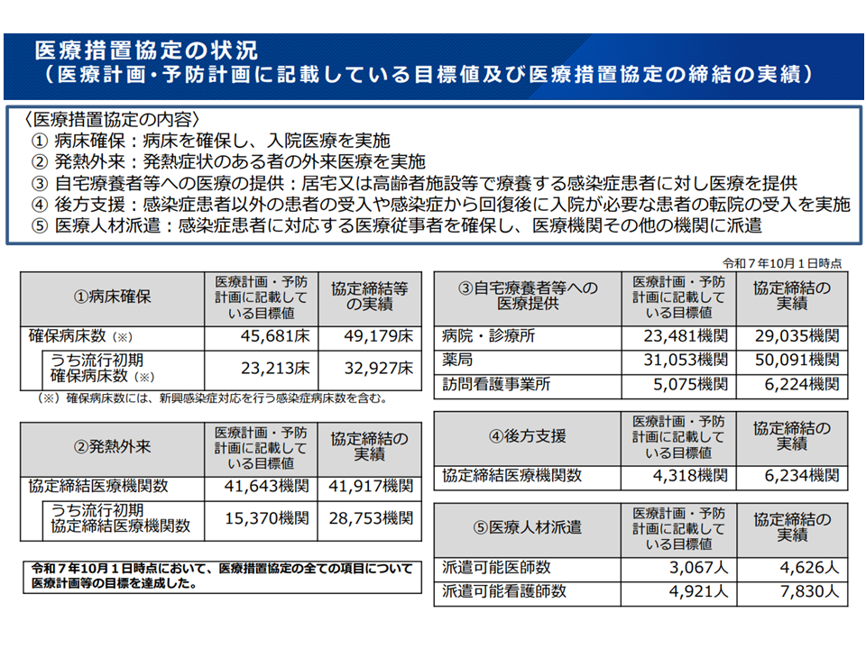 この点、医療措置協定の締結状況を見ると、昨年(2025年)10月1日時点で病床や発熱外来確保などは目標を達成できていることが確認できます。