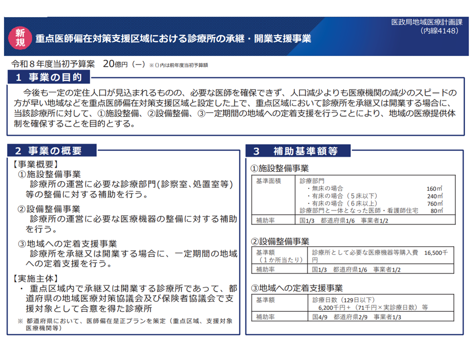 重点医師偏在対策支援区域における診療所の承継・開業支援(2026年度予算案10 251226)