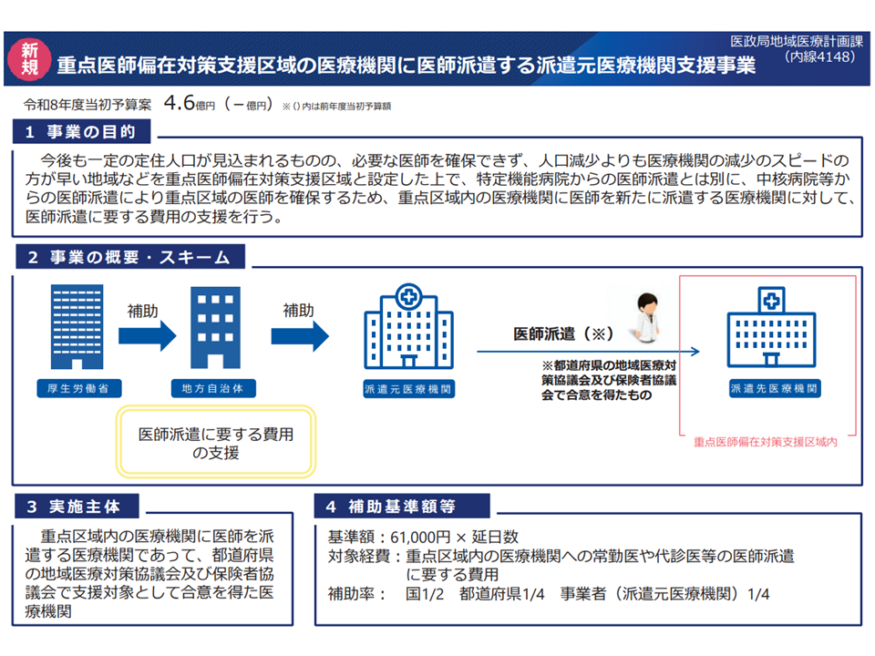 重点医師偏在対策支援区域の医療機関に医師派遣する派遣元医療機関支援(2026年度予算案11 251226)