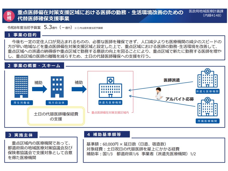 重点医師偏在対策支援区域における医師の勤務・生活環境改善のための代替医師確保支援(2026年度予算案12 251226)