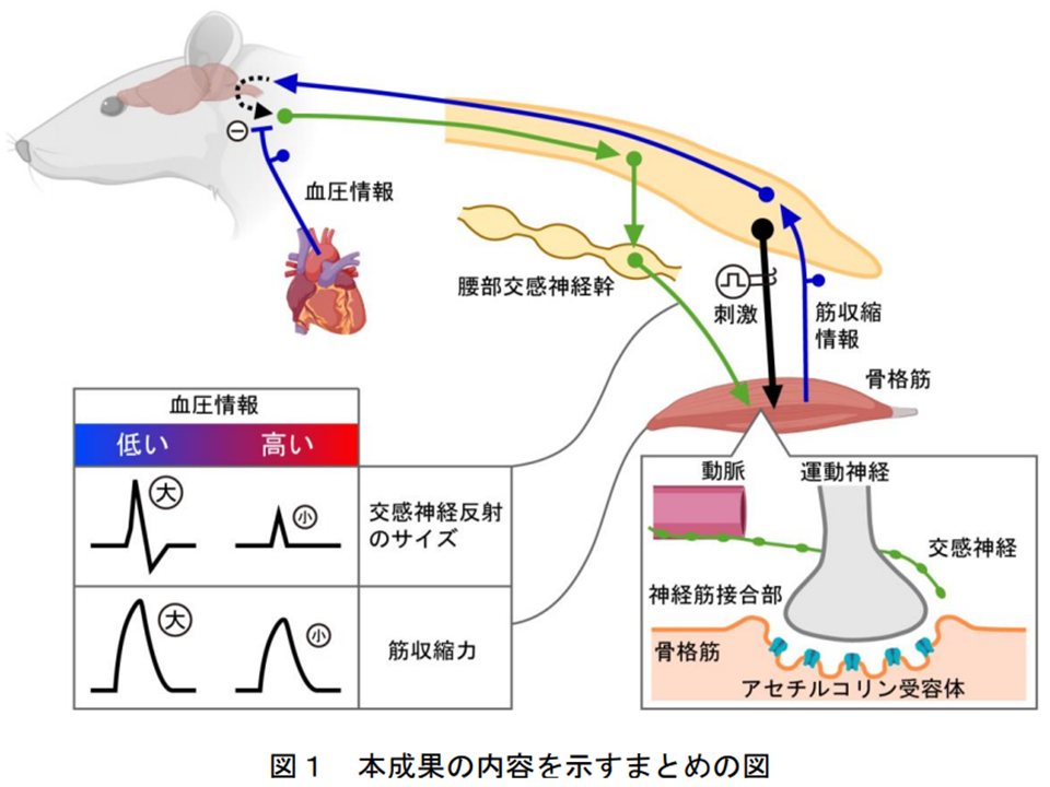 研究所では、これまでに「筋収縮の情報が交感神経活動を強める反応(反射)を引き起こし、その結果として筋収縮力を増強する」という、筋肉と交感神経の間でフィードバック調節のしくみがあることを明らかにしています。