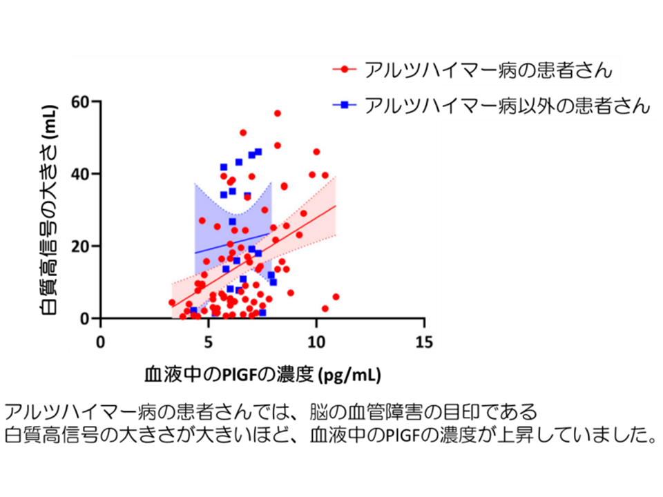 アルツハイマー病患者では、血液中の胎盤成長因子(PlGF)が、脳の白質病変(白質高信号)の程度と関連している