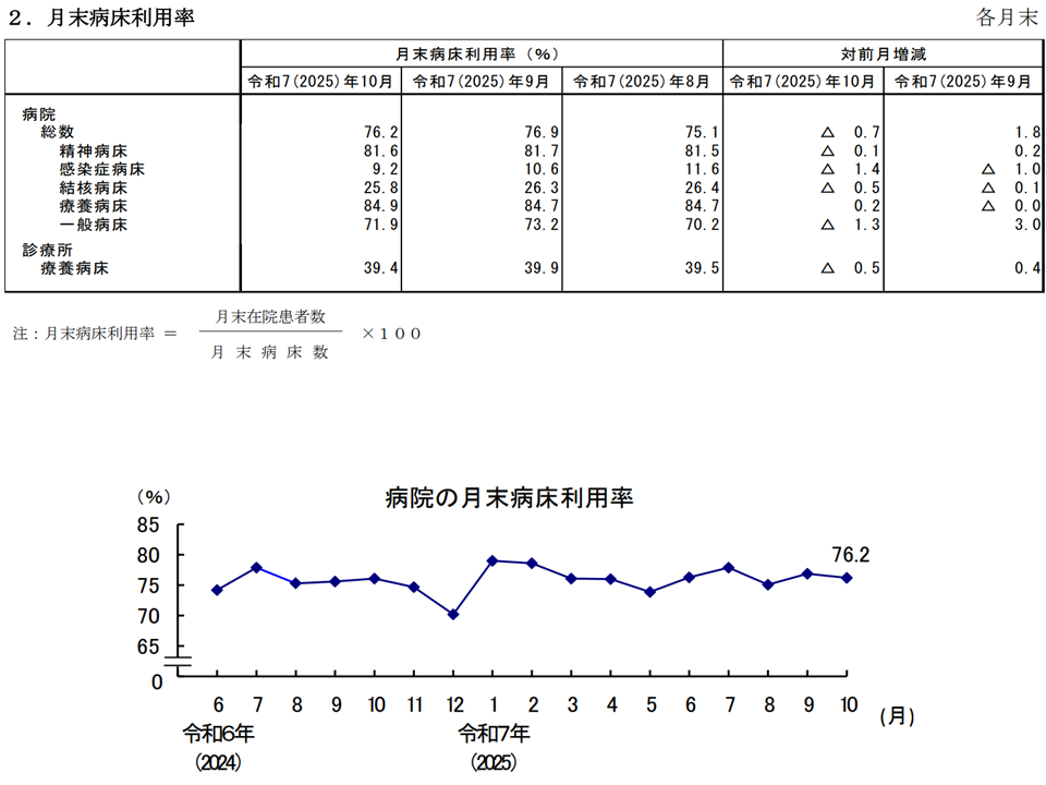 厚生労働省が1月7日に公表した昨年(2025年)10月分の病院報告から、こうした状況が明らかになりました(厚労省のサイトはこちら)。