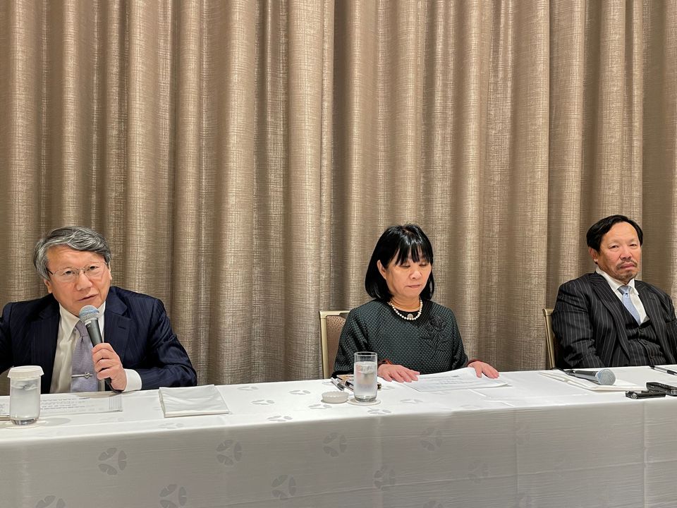 1月8日の日慢協定例記者会見に臨んだ矢野諭副会長(写真向かって左)、橋本会長(中央)、井川副会長(向かって右)