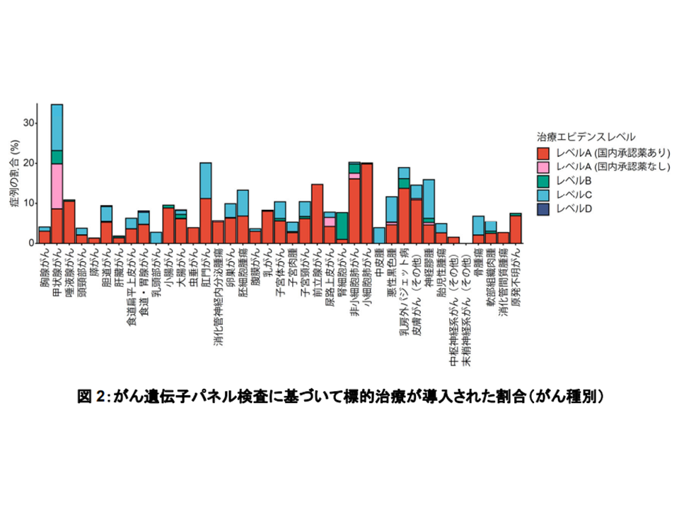 がん遺伝子パネル検査に基づき、最適な抗がん剤治療が行われた割合は、がん種によってばらつきがある