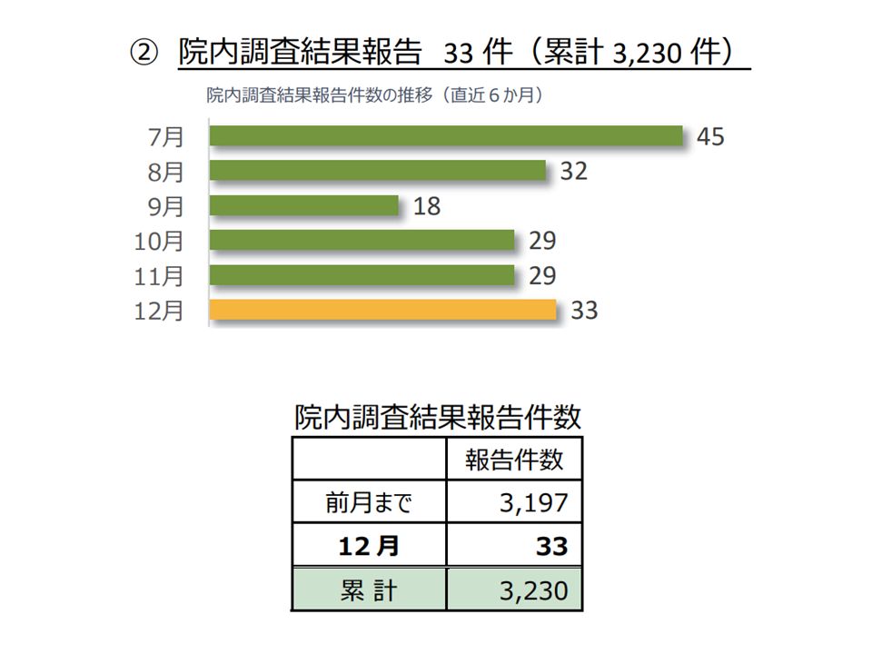 昨年(2025年)12月に新たに院内調査が完了した事例は33件で、制度発足からの累計では3230件となりました。