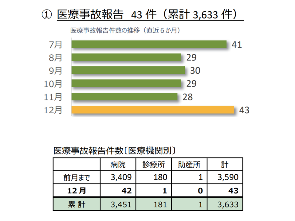 2025年12月の医療事故報告は43件、制度発足からの累計では3633件の事故報告