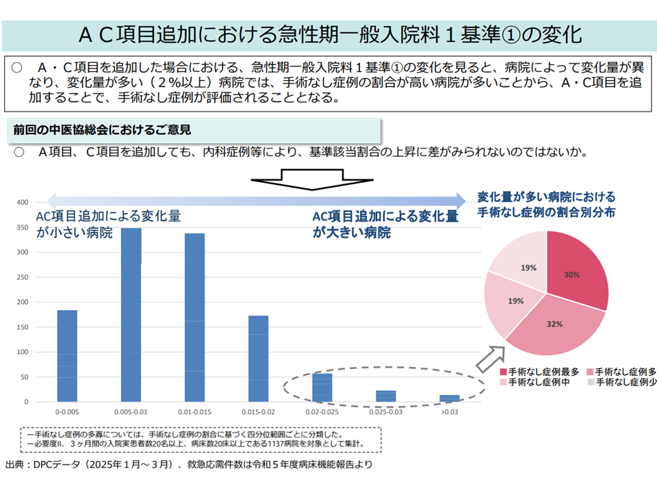 看護必要度の見直しは「手術なし症例の多い病棟」で大きな効果を生む(急性期一般1の基準1)(中医協総会(1)2 260114)