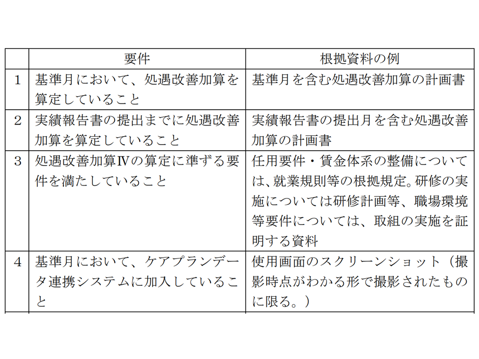 ▽要件の審査に当たり、計画書や実績報告書での誓約や対応の報告以外に別の資料提出などを一律に求めることはしないが、各介護サービス事業所等において、根拠診療を用意しておき、都道府県の求めがあった場合には速やかに提出することが必要である(根拠資料の保存期間は2年間)