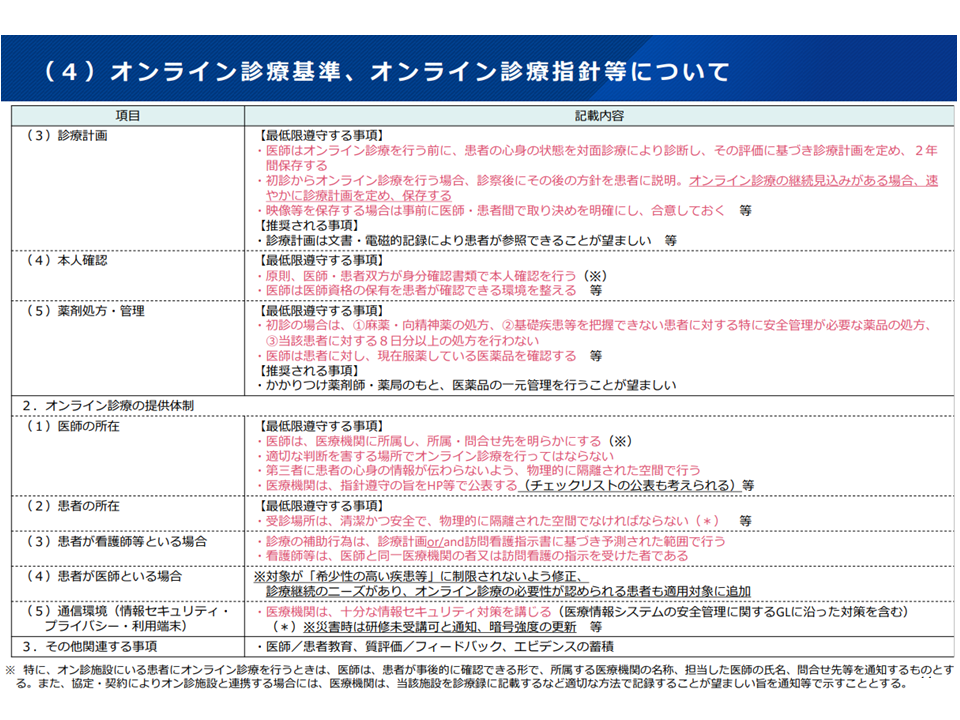 また、オンライン診療指針を遵守しているかどうかの「チェックリスト」についても、必要な見直しが行われます。
