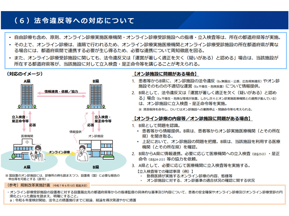 不適切なオンライン診療に対しては、都道府県が指導や立ち入り検査を実施