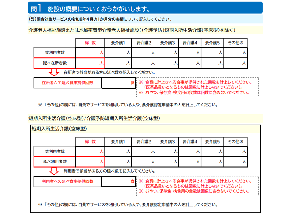 2026年度介護事業経営実態調査における従前から見直しポイント1(施設において食事提供の延べ回数を調べる)