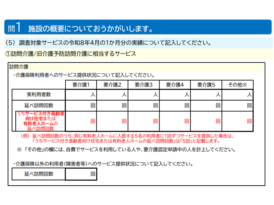 2026年度介護事業経営実態調査における従前から見直しポイント4(訪問系・通所系サービスでサ高住等への訪問回数を調べる)