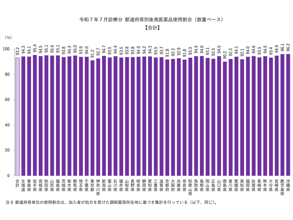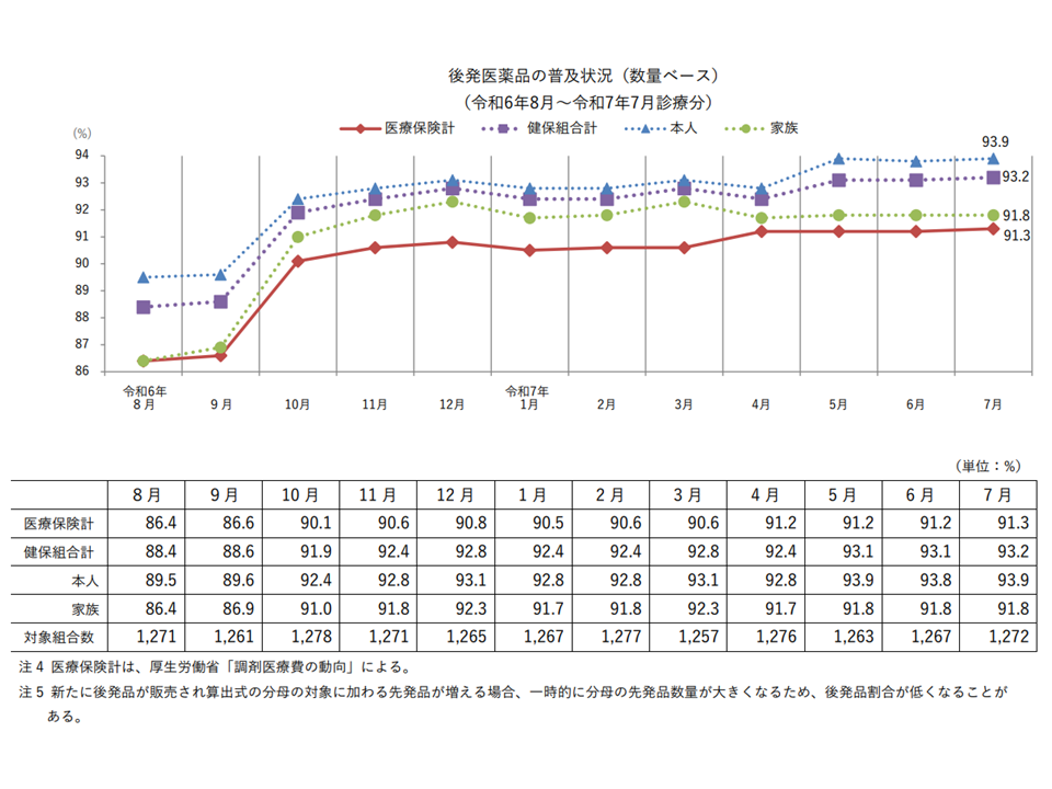 健保組合の後発品割合は調剤ベースで2025年7月に93.2%に上昇、ただし依然として大きな地域差—健保連