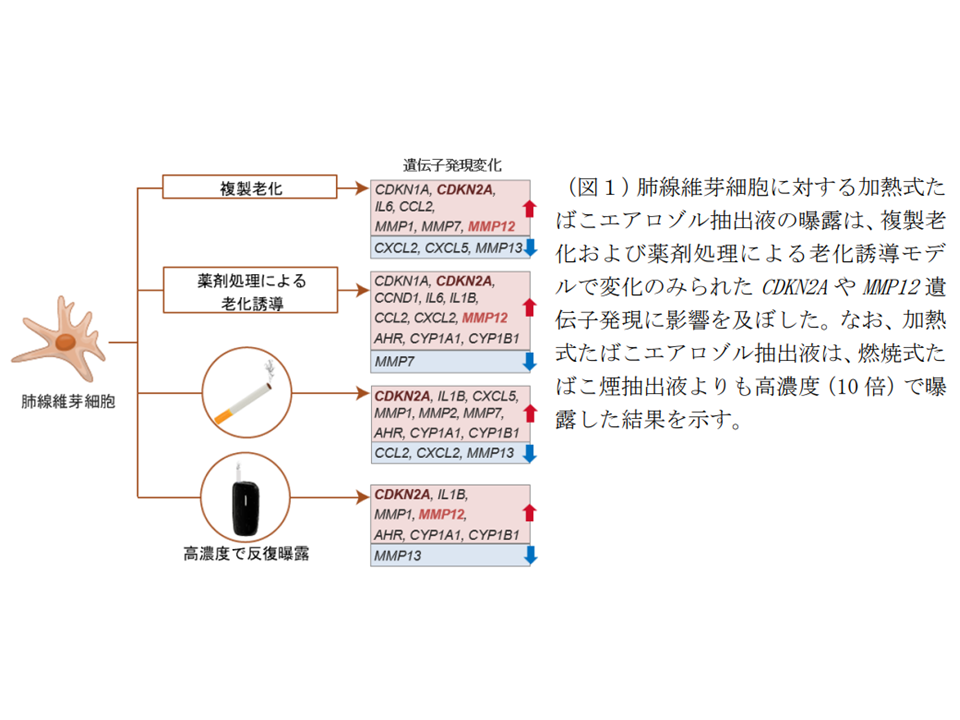 「加熱式たばこエアロゾル」によって細胞老化に関連する遺伝子の発現が増加し、それは「複製老化および薬剤処理による老化誘導モデルで見られる変化」と類似している
