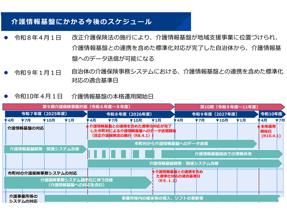 介護については、まず▼要介護認定情報▼請求・給付情報(レセプト)▼LIFEデータ(ケアの内容と効果)▼ケアプラン—の4情報について、介護事業所、行政、利用者が共有可能とする仕組みが構築され(介護情報基盤)、2026年4月より「準備の整った市町村」から順次利用可能となります(関連記事はこちらとこちら)。