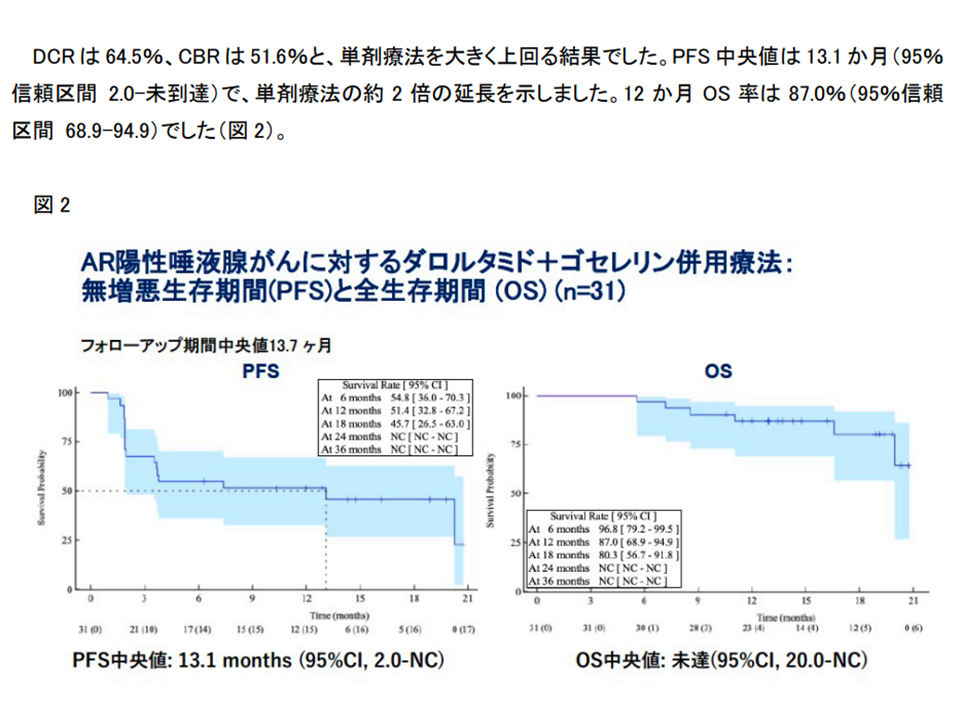 「AR陽性唾液腺がん」に対するダロルタミド+ゴセレリン併用のCAB療法の有効性・安全性研究2