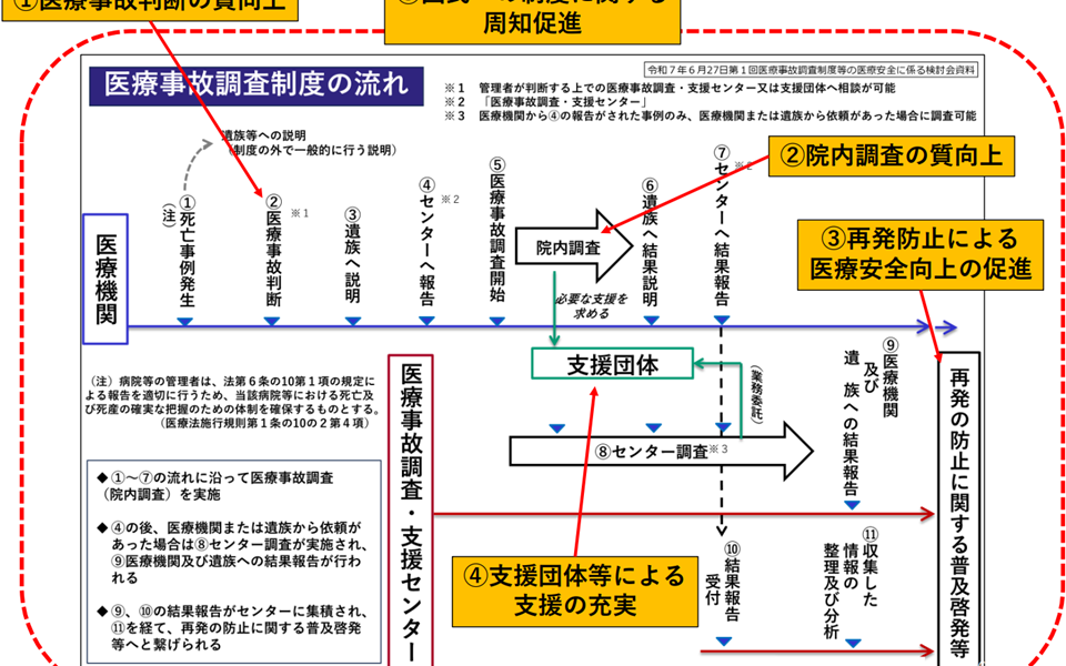 医療事故調査制度の入り口となる「医療事故の判断」をより適切に行えるよう、組織での判断、記録・保存、研修など進める—医療安全検討会