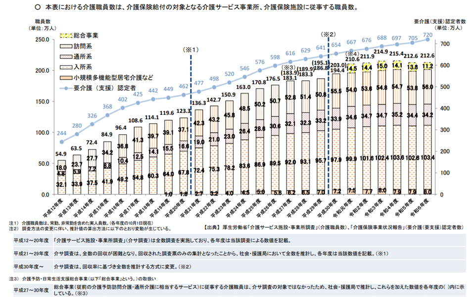 2023年度から24年度にかけて、要介護認定者等が2.1%増加する一方、介護職員は増加せず―厚労省